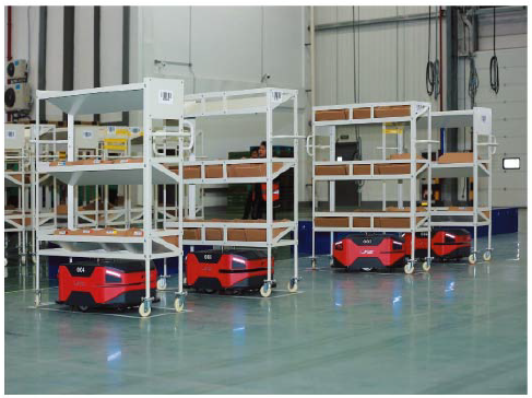 AGV系統(tǒng)具有無(wú)人駕駛的顯著特點(diǎn),其裝備有自動(dòng)導(dǎo)向系統(tǒng),可以保障系統(tǒng)在不需要人工引航的情況下就能夠沿預(yù)定的路線軌跡自動(dòng)行駛,將貨物或物料自動(dòng)從起始點(diǎn)運(yùn)送到目的地。系統(tǒng)的另一特點(diǎn)是柔性好、自動(dòng)化程度和智能化水平很高,設(shè)備的行駛路徑可以根據(jù)工位或貨位要求、生產(chǎn)工藝流程等改變而靈活改變,并且運(yùn)行路徑改變的成本比傳統(tǒng)的輸送線要低廉很多。