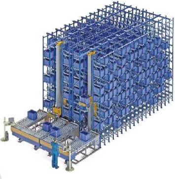 是以箱盒為單元進(jìn)行自動存取的高密度存儲解決方案。貨架立柱采用特制立柱,側(cè)掛式橫梁角片掛接在立柱內(nèi)側(cè),運(yùn)行在巷道內(nèi)的堆垛機(jī)采用側(cè)入式存取料箱,非常適合品種眾多、中小型零部件和物品的存儲。